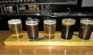16 beers on tap. Really unprofessional technique serving samples, pouring new sample into the previous tasting glass, rather than providing a fresh glass.