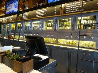Large, lively, bright and modern space with a long bar. 14 beers on tap plus guest taps, as well as a full bar with signature cocktails.